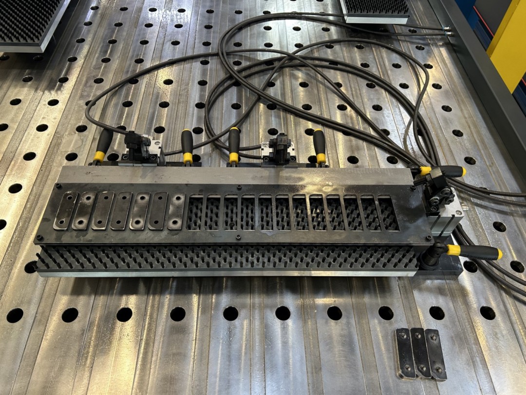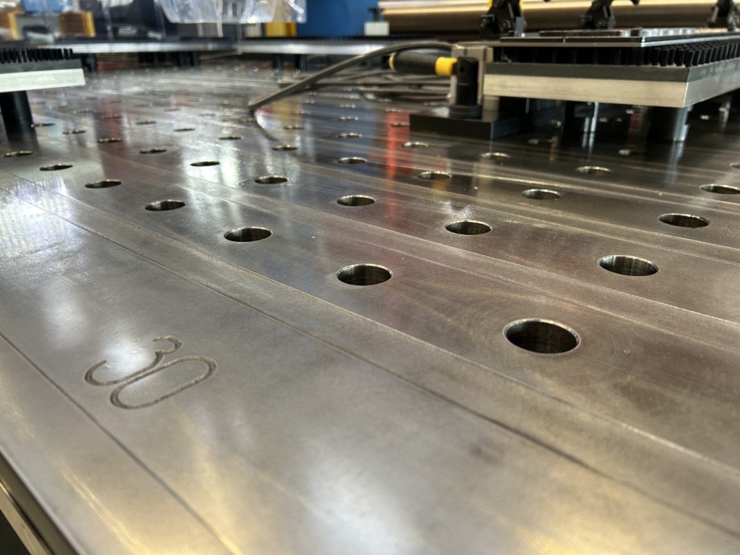 La table est conçue avec des trous de Ø28 offrant des avantages considérables. Ces trous constituent des points d'ancrage solides pour la fixation sécurisée des systèmes de bridage (compatabile avec les systèmes DEMELER et SIEGMUND). Ils servent également de points de référence pour définir le point zéro. L'utilisation de points de référence et d'ancrage identiques permet de réduire significativement le temps de changement de pièce. Il en résulte une efficacité accrue de la machine et une réduction des temps d'arrêt.