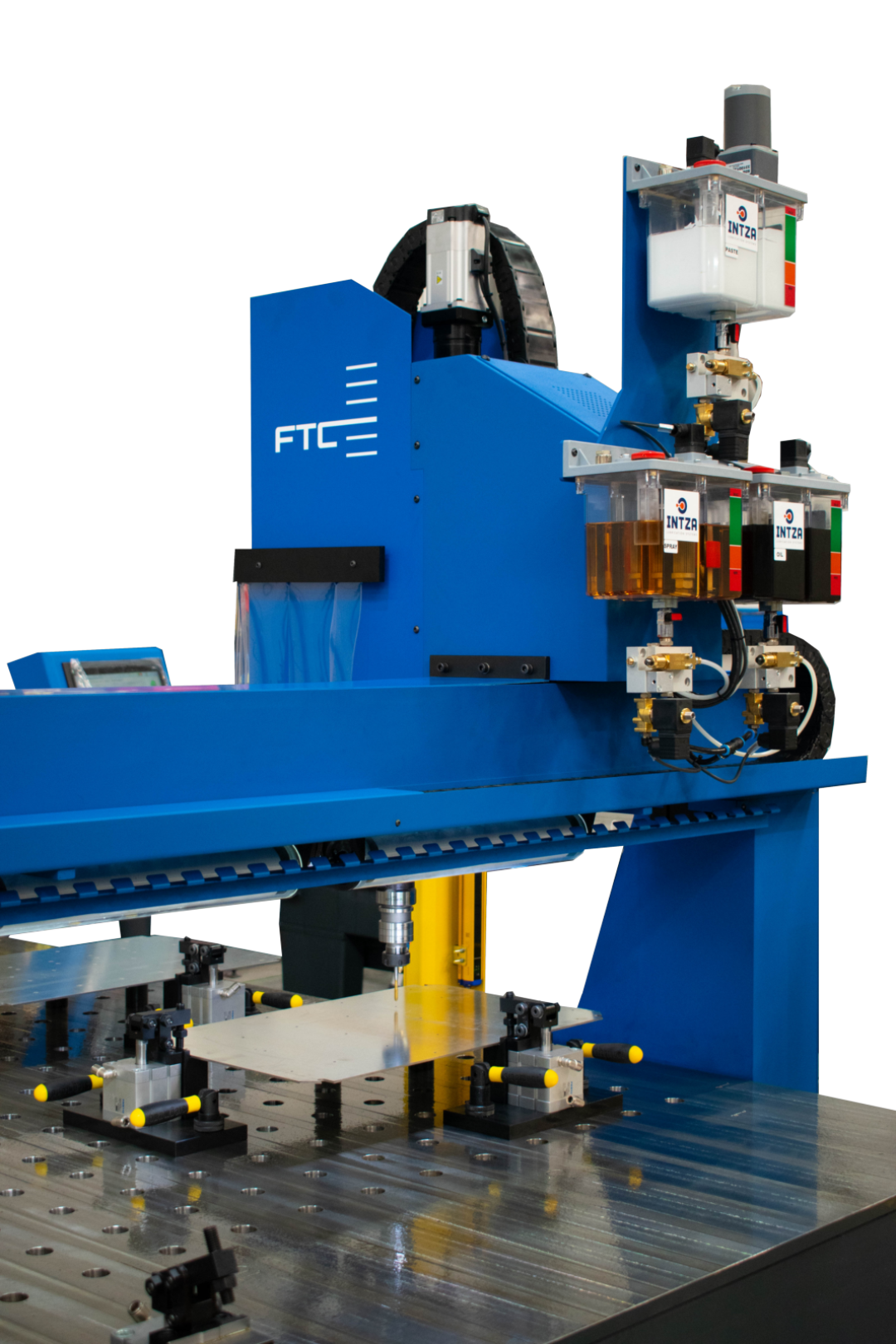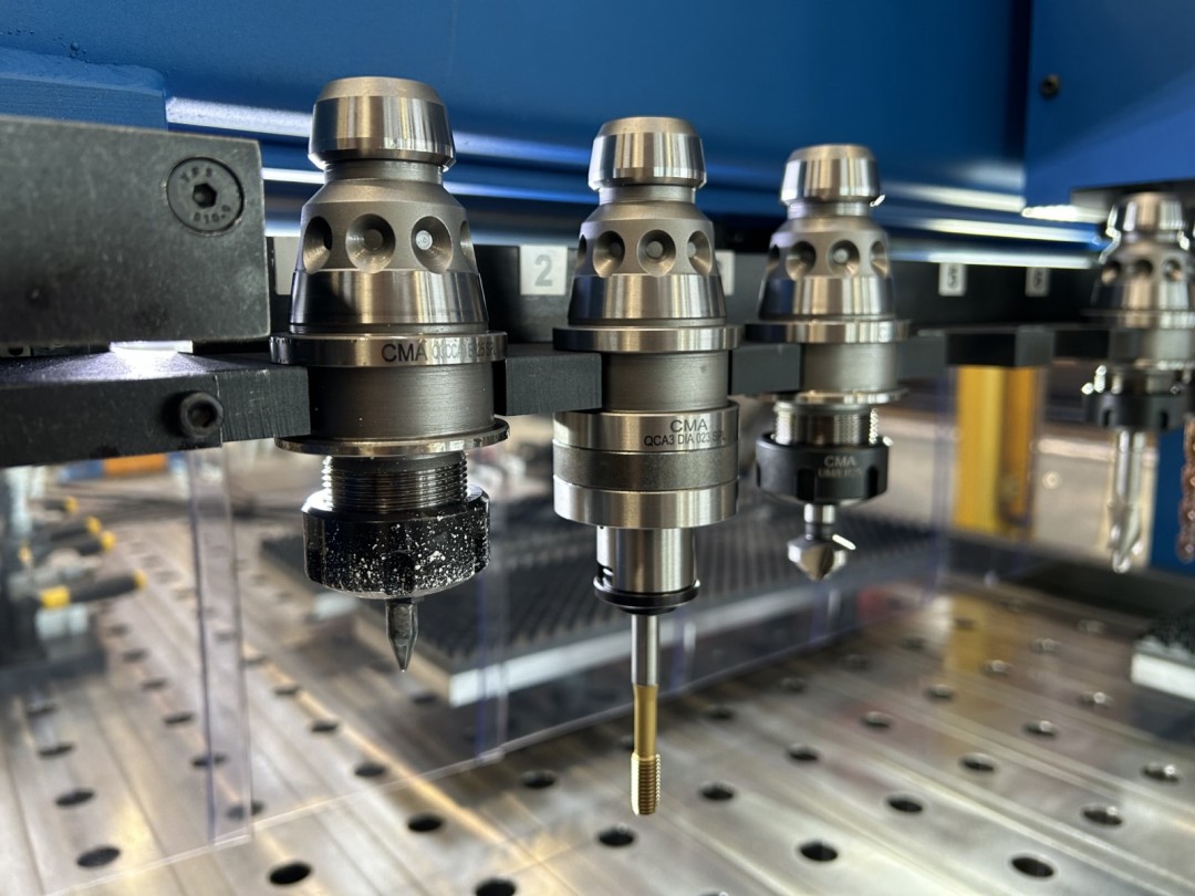 Les centres de taraudage automatiques CNC FTC de CMA sont dotés d'une tête mobile 3 axes (X, Y, Z). Ils sont conçus pour le perçage, le taraudage et le fraisage de tôles issues de la découpe laser. Le système innovant de tête flottante, conçu, breveté et fabriqué par CMA, permet de compenser les écarts de positionnement de la pièce jusqu'à 1 mm , évitant ainsi la casse des outils.