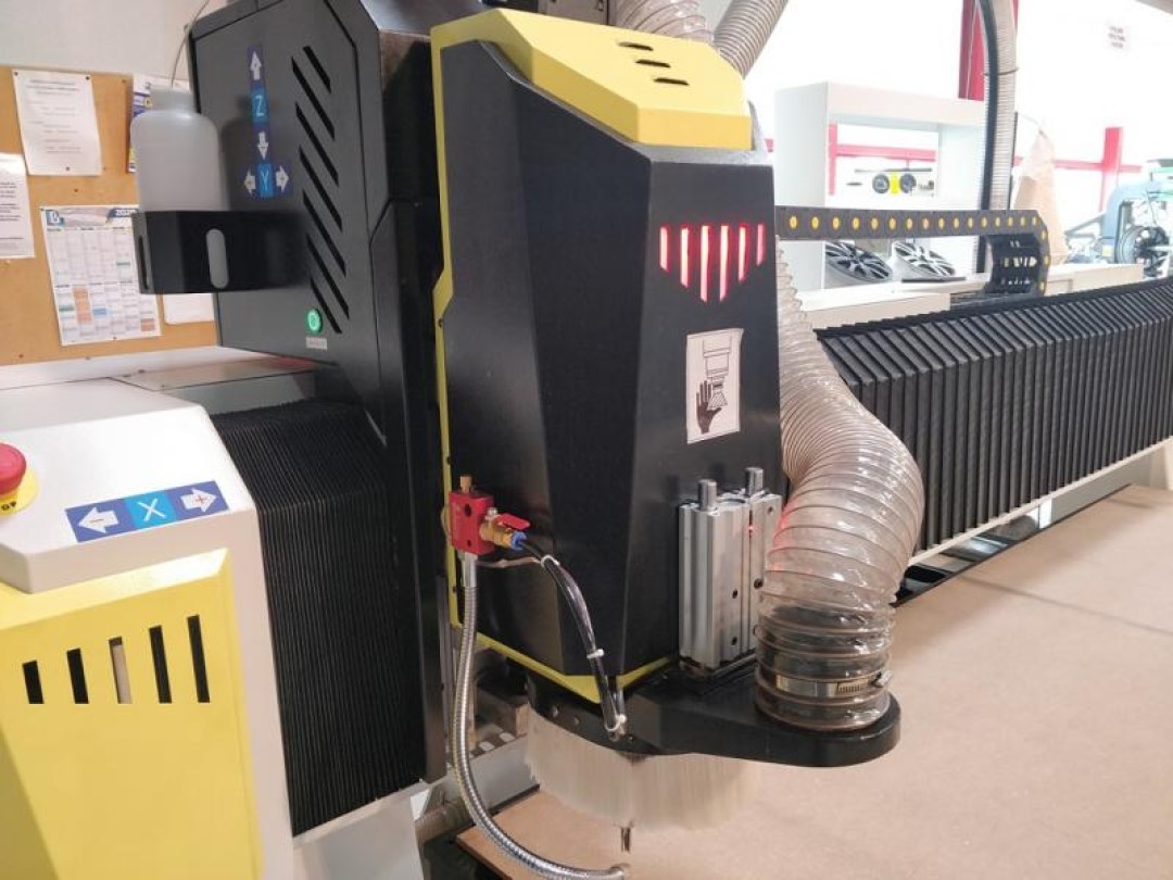 Cette machine avec des courses de 2500x1300x200mm est adaptée pour l'usinage de plaques et pièces de grande dimensions de materiaux tendres.
