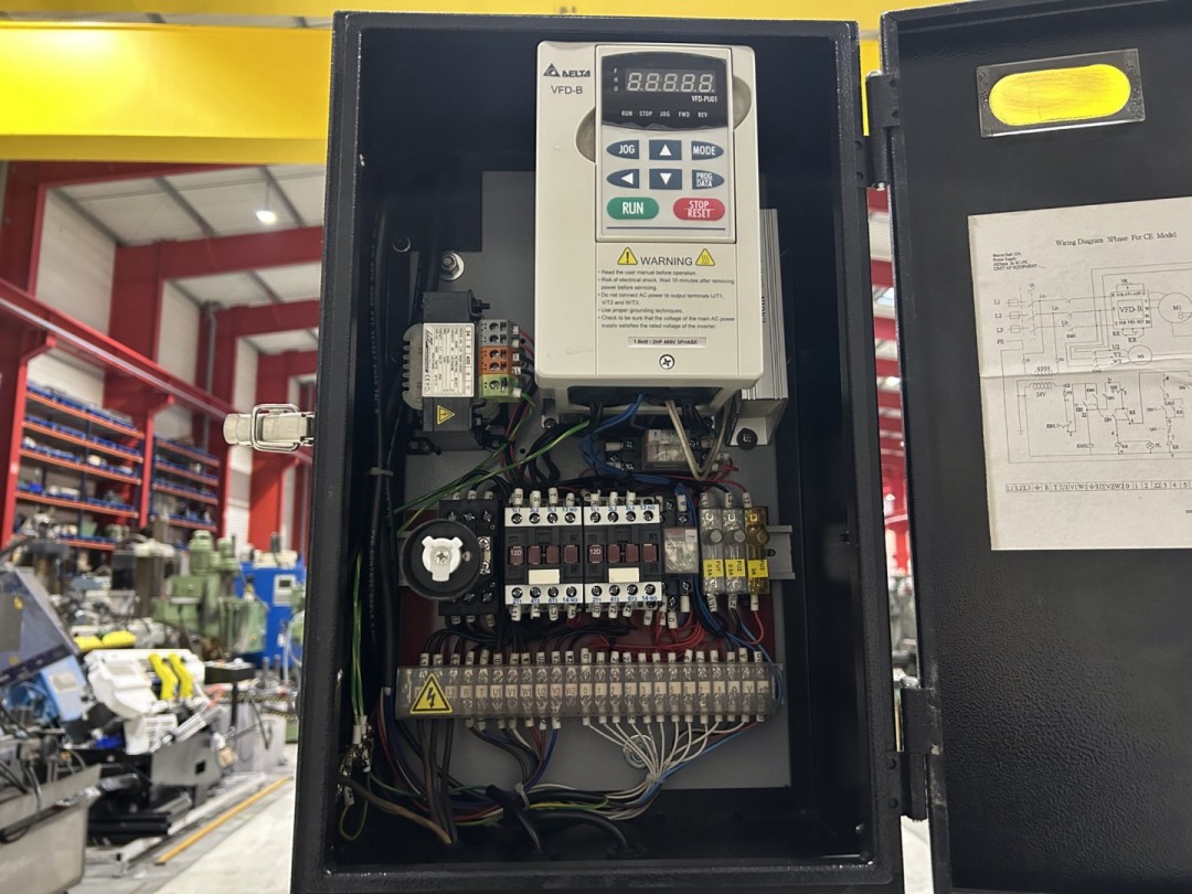 Machine conforme aux normes CE avec carter de broche asservi