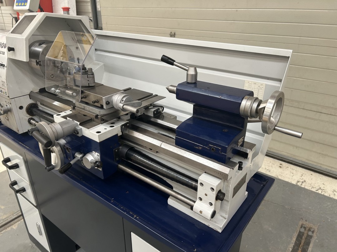 Le mandrin Ø160, le passage important dans la broche et le couple élevé procuré par le moteur brushless (230V) en font une machine polyvalente. Ce tour est équipé d'une visualisation des 2 axes.