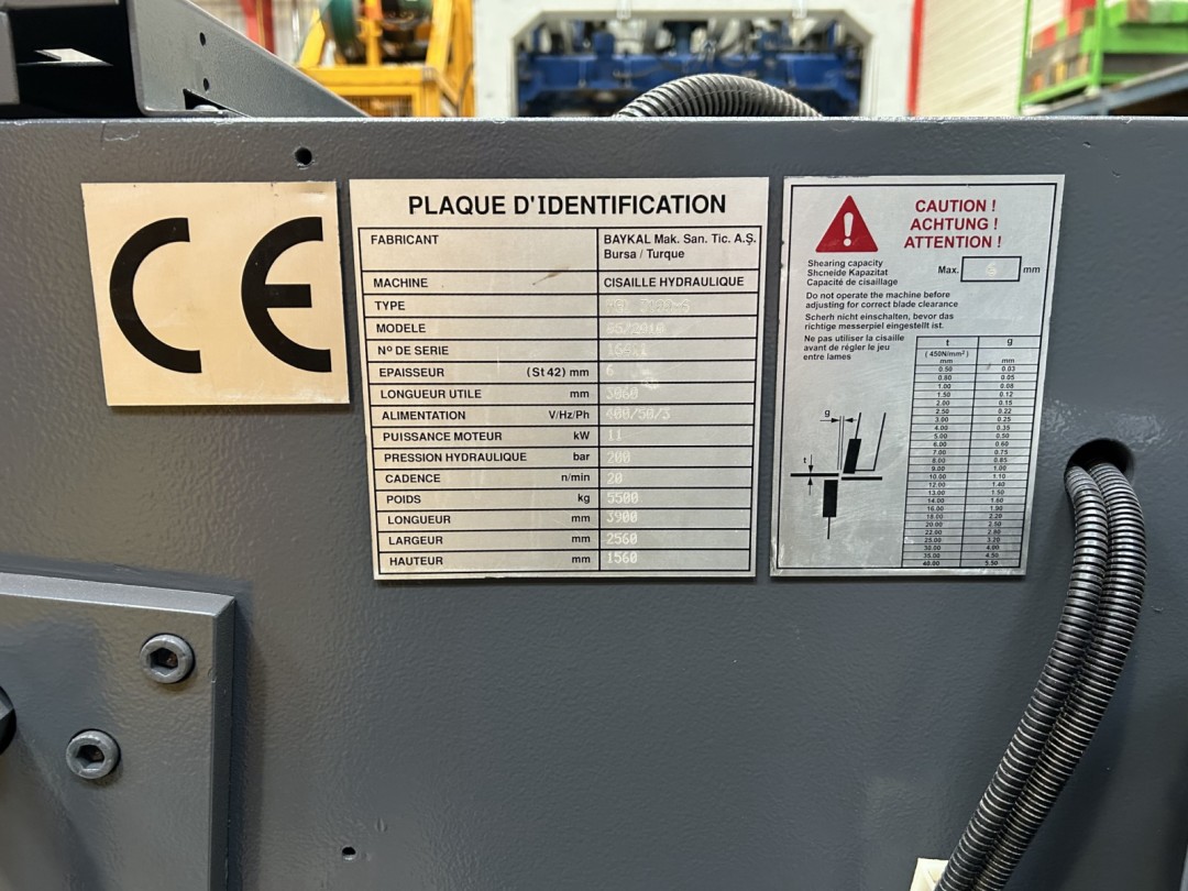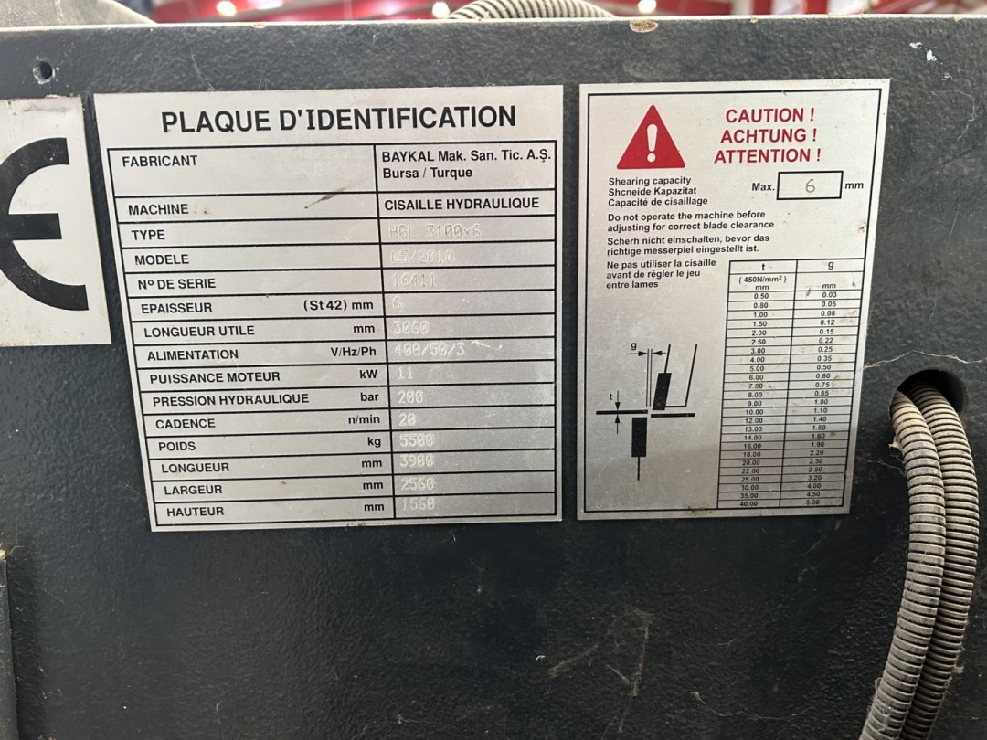 | Longueur de cisaillage (mm) | 3060 |