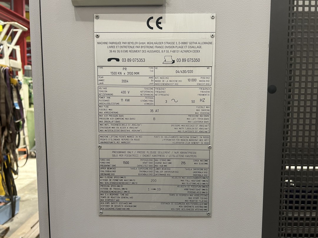 Plieuse CNC d'Occasion BYSTRONIC PR150 x 3100